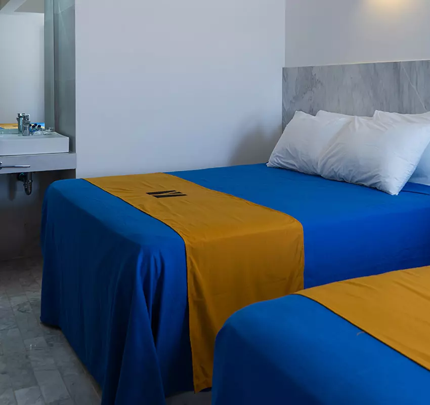 Habitación doble cuenta con dos camas Queen Size, balcón, vista al jardín o alberca, vistas a la ciudad, aire acondicionado, TV, insonorización, wifi y caja fuerte. No se permite fumar dentro de la habitación.