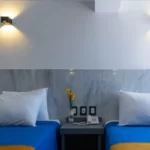 Habitación doble con vistas al puerto, 2 camas Queen y dos sofás cama individual, aire acondicionado, suelo de baldosa/mármol, baño en la habitación, tv, insonorización, terraza, wifi y caja fuerte. No se permite fumar dentro de la habitación.